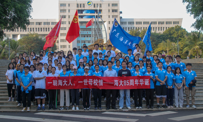 随着开跑发令枪响后,同学们从海洋广场出发,沿着校道环绕海大校园一周。大家用环校跑这一特殊的方式,表达了对学校85岁生日的美好祝福。