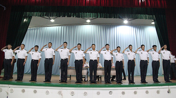 张懿对全体航海类专业同学提出三点要求:一是强化纪律观念。没有规矩不成方圆,尤其是航海类专业学生培养的特殊性,更是要树立坚定的纪律观念,以适应国防建设和海上运输事业发展的需求;二是强化标准意识。干净简洁的宿舍内务,笔挺整齐的院服、雷厉风行的队列行动,才是航海类专业学生必须具备的基本素养;三是要找准人生目标。同学们应当怀揣着希望和梦想、志存高远,严于律己、争创优先、不断挑战超越自己,创造未来。