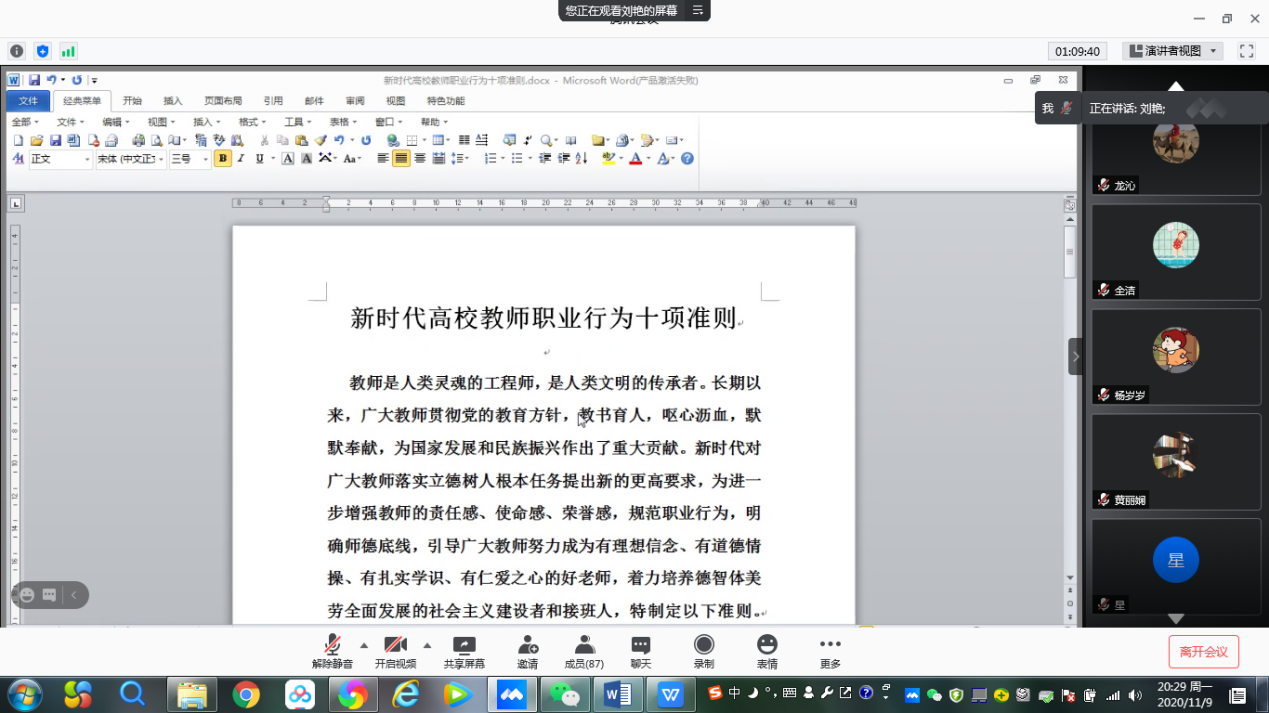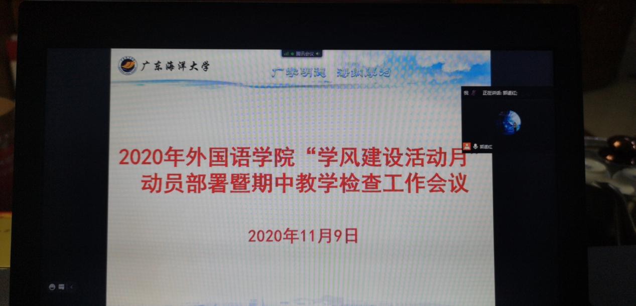 11月9日晚上,外国语学院通过腾讯会议平台召开2020年“学风建设活动月”动员部署暨期中教学检查工作会,学院全体教职工90余人参加了会议,会议由院长郭遂红主持。