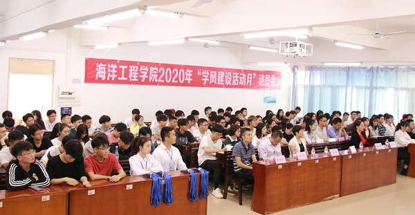 11月4日下午,海洋工程学院在海滨校区电教楼301室,召开2020年“学风建设活动月”动员大会,学院党总支书记邓伟、院长严谨,各系主任、全体辅导员和部分教师代表,学院团委学生会、自律会、易班工作站以及各班级学生代表共计130余人参加会议,党总支副书记尹霞主持会议。