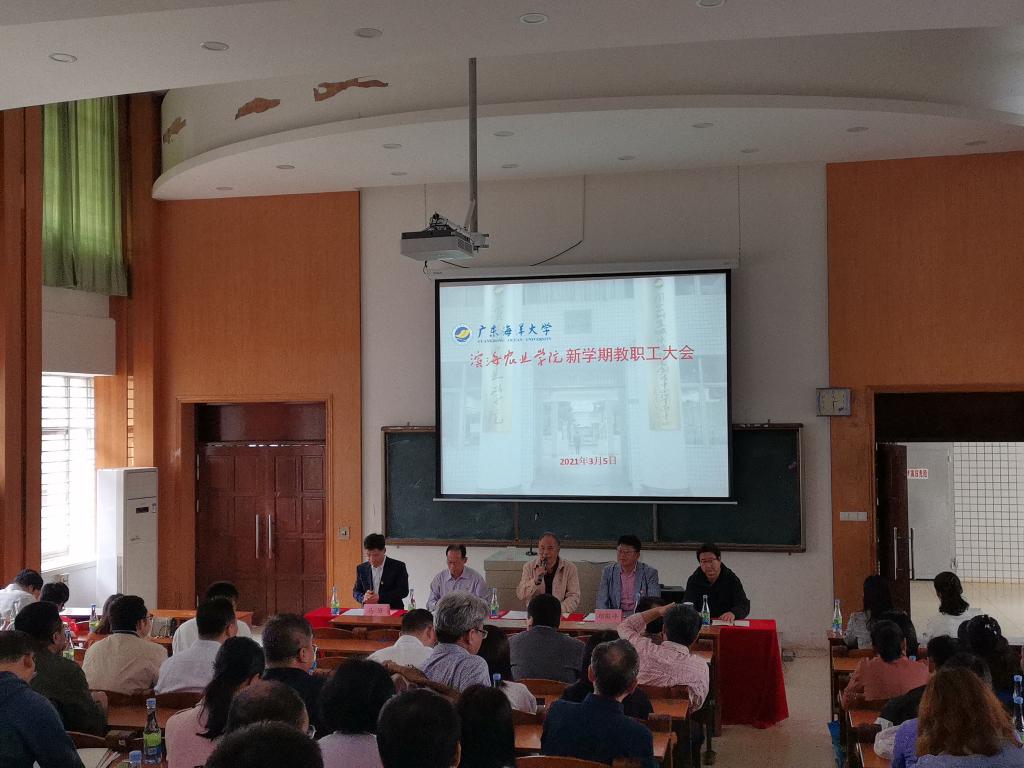 3月5日下午,滨海农业学院在湖光校区兴农楼109室召开新学期教职工大会。学院领导、全体教职工参会。会议由学院党委书记邓伟强主持。