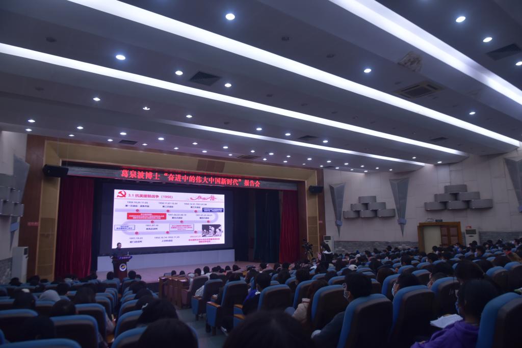 开讲前,葛泉波倡议全场起立,共同为2020年战疫期间牺牲在各条工作战线以及70年前在抗美援朝上英勇献身的烈士默哀致敬。报告中,葛泉波从“伟大的党、伟大的中华民族”“回顾历史——值得思考的问题”“新中国对敌斗争史”“新中国科技发展辛酸史”“新中国科技成就”“新时代爱国主义”等方面,以近代中国主要的苦难历史事件回顾为导引,运用丰富详实的数据比较和事件内涵分析等方法,展示新中国在中国共产党领导下取得的辉煌成就,激发师生们爱党爱国爱社会主义的深厚情怀,达到增强制度自信和民族自信的目的。报告中,尹喜还受邀带领全场师生通过朗读共同认识了“努力学习也是一种爱国体现”的论述,领悟了爱国其实就在每个人身边,就要从小事做起的道理。