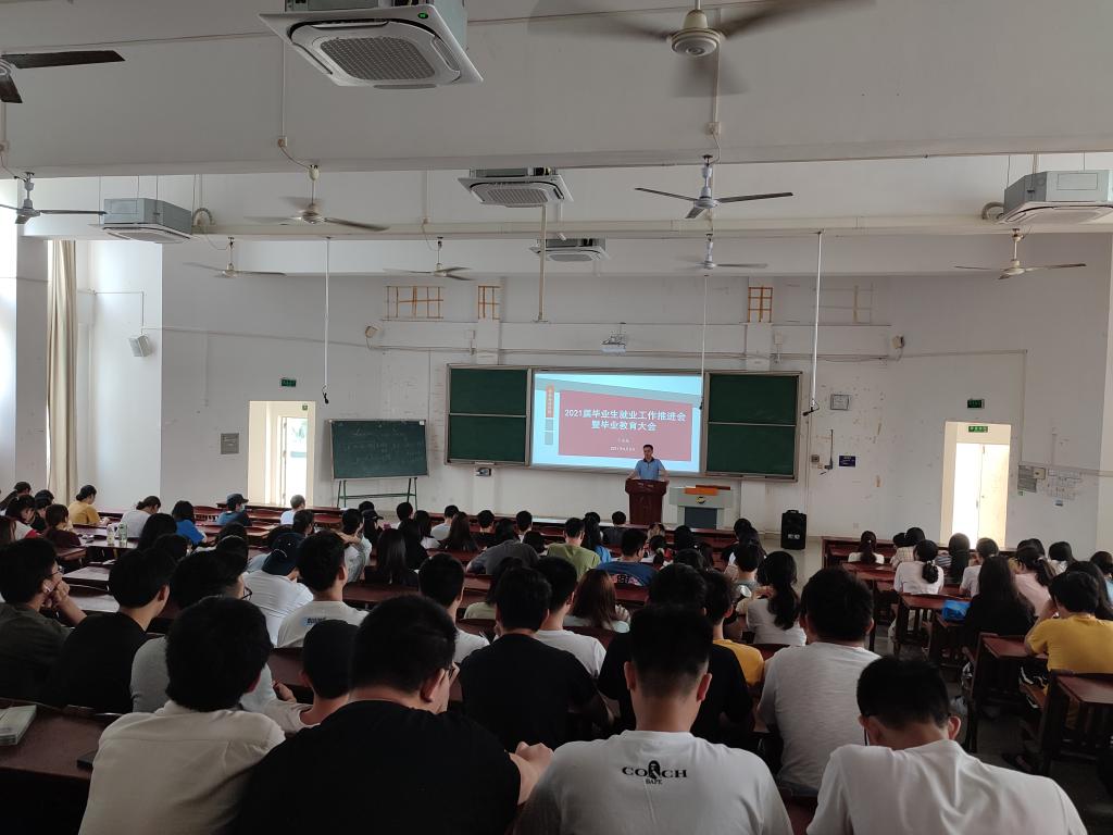 会上,丁永成传达了国家教育部、广东省教育厅及学校关于做好2021届毕业生就业工作的相关文件及会议精神,分析了2021届高校毕业生的就业形势,通报了学院近三年毕业生就业情况、就业去向和2021届毕业生目前的就业情况,提出了2021届毕业生就业工作的具体要求和目标,并对2021届毕业生进行了安全教育。丁永成强调,2021届高校毕业生就业形势严峻,要把毕业生就业工作作为重中之重,学院要认真做好毕业生就业指导和服务工作,要求毕业生树立“先就业后择业”的就业观、拓宽就业渠道、拓展就业空间、积极创新创业,认真对待毕业、理性对待就业、确保安全顺利毕业、尽早择业就业,促进充分高质量就业。
