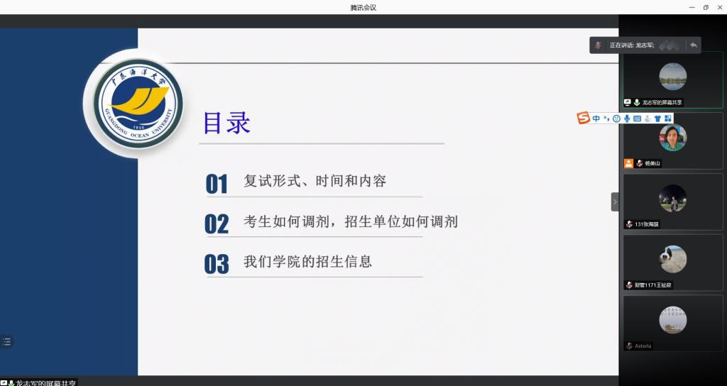 为帮助2021届毕业生进一步掌握考研复试经验,明确努力方向、坚定考试信心,3月26日晚上,管理学院通过线上平台召开2021届毕业生考研复试与调剂交流会。副院长杜军教授、党委副书记吴少文、研究生辅导员龙志军、毕业班辅导员、2020届考研优秀学生代表、2021届考研复试学生以及有考研意向的学生共85人参会。会议由辅导员杨美山老师主持。