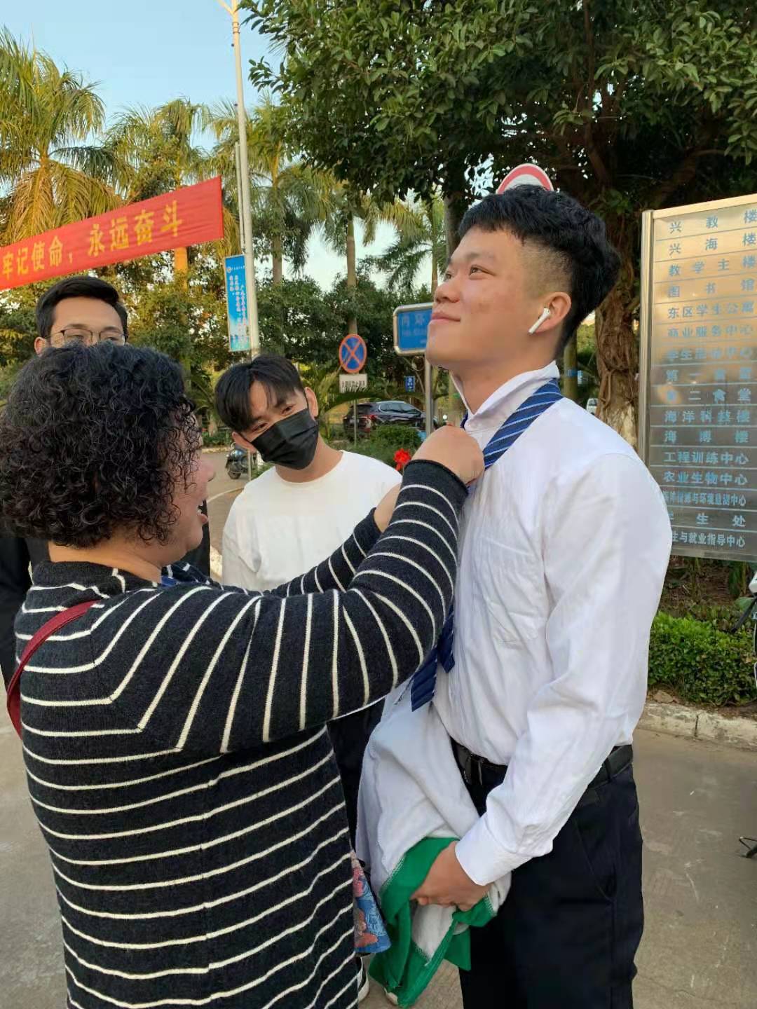 廖老师始终以一个陪伴者的身份站在学生身侧。新生入学军训时,廖老师每天都会到场,陪着他们一起流汗晒太阳,当发现学生身体不适时,她便立即向教官反映情况,保障学生的身体健康。而在日常生活中,廖老师会时常到学生宿舍探访,关心他们的衣食住行。通过对学生日常生活的观察,廖老师也对学生的贫困认定情况是否属实的问题作出了判断,她表示“钱要用在刀刃上”。当有学生生病住院时,即使路途遥远,廖老师也会在第一时间赶去医院,像是学生的定心丸和主心骨,她的出现总能给学生带来安心的感觉。有一年国庆假期,台风“彩虹”来袭,学校停水停电,道路不通,留校学生的手机电量和信号皆无,校园内的自动取款机无法取款,情况很糟。辗转反侧之下,廖老师驱车绕路到学校亲自确认学生的情况,她的心在见到学生的那一刻终于定了下来。