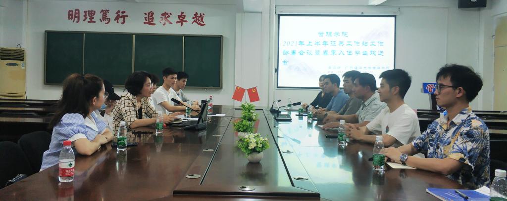 为推进征兵工作有计划有步骤开展,不断增强学院“青春迷彩会—征兵工作站”凝聚力,3月18日晚,管理学院在湖光校区教学主楼1005会议室召开2021年征兵工作部署会议暨春季入伍学生欢送会。学院党委副书记吴少文、学生处少数民族专职辅导员谢米希开买尔、辅导员杨美山、姚树凯、入伍学生代表阿依古扎力·黑力力和学院征兵工作站全体人员参会。会议由杨美山主持。