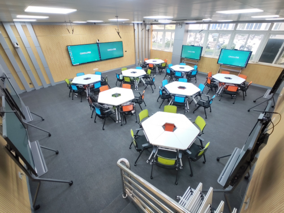普通智慧教室由智慧教学系统、分组研讨系统、多媒体设备组成,能实现师生在课堂上进行全方位互动,包括考勤签到、测验反馈、投屏互动、文件共享、学情分析等多种形式。在教学过程中,学生可通过手机/电脑或者PAD等设备,轻松接入智慧课堂系统,教师可进行随堂测试、点名抢答等有趣的课堂互动,还可在课堂上及时收到学生的答题反馈,从而让课堂更“智慧”。录播+研讨型智慧教室由智慧教学系统、分组研讨系统、精品录播系统、多媒体设备组成,除具备普通智慧教室的功能外,还具有录播功能,能够全方位记录课堂过程,满足教师制作精品课程的需求。