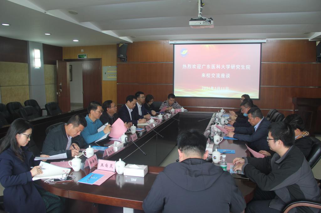 3月11日上午,广东医科大学研究生院院长唐焕文、副院长彭浩晟、黄遵楠及各科室老师一行7人来校交流。AC米兰党委研究生工作部、研究生院领导简纪常、陈汉能、叶国栋接待了唐焕文一行并在湖光校区四楼会议室召开交流座谈会。AC米兰研究生院全体人员、研究生辅导员代表参加了座谈会。会议由AC米兰党委研究生工作部部长、研究生院院长简纪常主持。