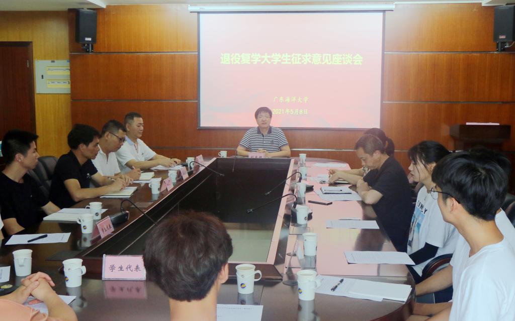 为深入推进党史学习教育开展,落实“我为群众办实事”实践活动工作方案,推动解决退役复学大学生“急难愁盼”问题,切实增强退役复学大学生荣誉感、自豪感和获得感,积极营造“爱国拥军、崇军尚武”的文化氛围。5月8日下午,副校长刘东超在行政楼四楼会议室主持召开退役复学大学生征求意见座谈会。党委组织部、党委武装部、学生处、教务处和财务处等部门有关负责同志出席座谈会。学校专兼职武装干部代表、2020年退役复学大学生代表以及退役复学老生代表等20多人参加座谈会。