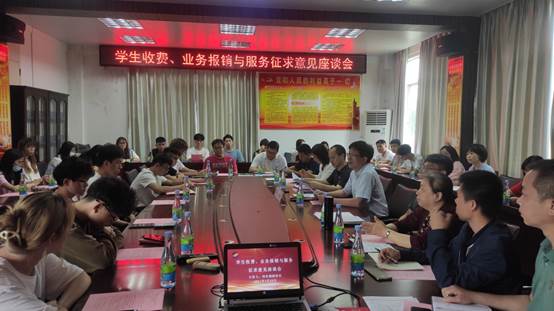 在“学生收费、业务报销与服务征求意见”座谈会上,各学院学生代表踊跃发言,围绕学费标准、缴费方式、学费退费、助学贷款、医疗报销、退伍复学等方面,共提出了40余条问题以及相关建议。刘东超和财务处负责人及各业务科室代表、学生处代表认真聆听、仔细记录,并现场提出有关问题的解决方案。对于不能当场解决的问题,刘东超要求整理反馈,开展调查研究,摸清情况,尽快给同学们一个满意的答复。座谈会进行了约2个小时,现场气氛融洽而热烈。