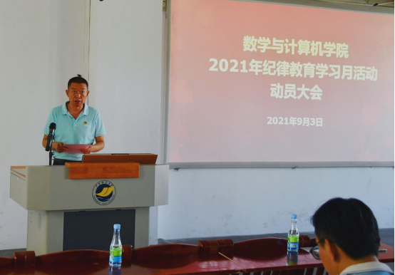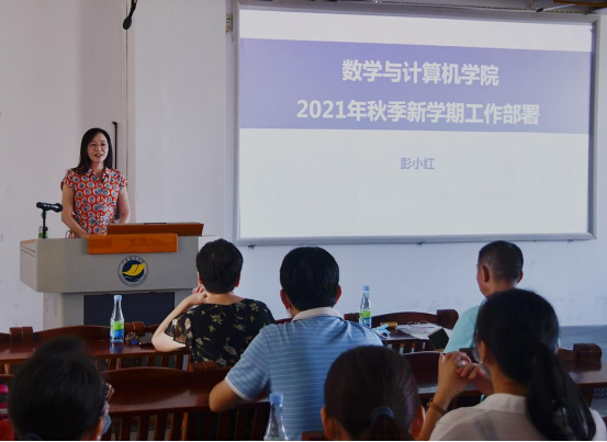 9月3日上午,数学与计算机学院在第二教学楼A103学术报告厅召开2021年秋季新学期开学工作会议暨2021年纪律教育学习月活动动员大会。新学期开学工作会议由学院党委书记谢仕义主持,院长彭小红对新学期学院总体工作进行了部署并对学院“十四五”事业发展规划进行了解读,全院教职工参加会议。