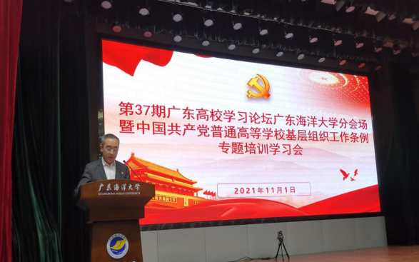 11月1日,学校在湖光校区教学主楼多功能厅组织相关人员参加省委教育工委举办的第37期广东高校学习论坛视频会议,专题培训学习中国共产党普通高等学校基层组织工作条例(简称新《条例》)。学校领导曹俊明、彭权群、林晓敏、刘东超、高秀梅、林宇出席会议,党务部门负责人、各二级党组织负责人、党支部书记、专职组织员等160余人参加会议。学校阳江校区相关同志以专线视频方式参加本次专题学习会。