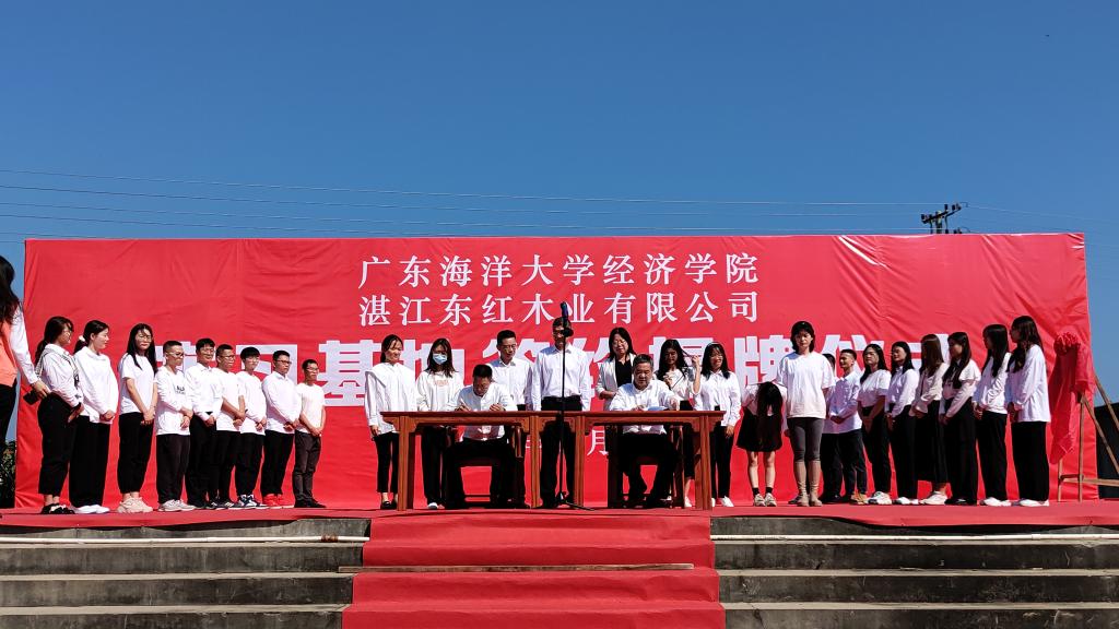 10月24日,经济学院与湛江东红木业有限公司举行校外教学实习实践基地签约揭牌仪式。公司董事长丁华东及公司员工代表,学院党委书记肖文辉、经济学院院长居占杰、副院长杨新华及院办主任和研究生代表共38人参加。学院党委书记肖文辉主持仪式。