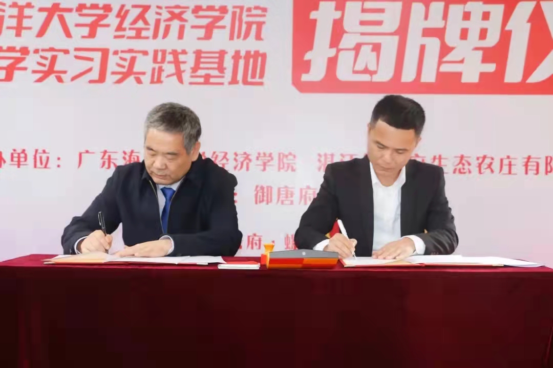 12月8日上午,经济学院与湛江御唐府生态农庄有限公司共建教学实习实践基地签约揭牌仪式在遂溪县螺岗小镇隆重举行。广东省人大代表、御唐府集团董事长梁思桥、御唐府集团董事兼出品总监、酒店管理公司总经理高飞、御唐府集团董事罗伟军等嘉宾出席揭牌仪式,经济学院院长居占杰、副院长陈本良及40余名研究生参加活动。