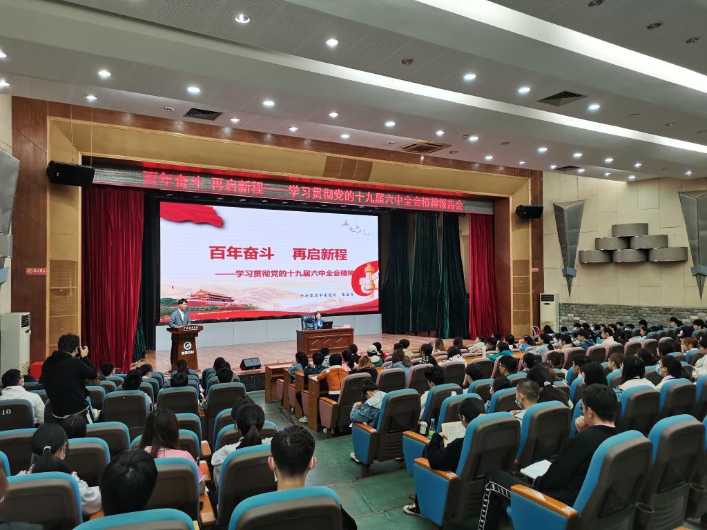 12月5日上午,校团委在湖光校区教学主楼多功能厅举办学习贯彻党的十九届六中全会精神报告会。报告会由中共茂名市委党校教育长张蓝青主讲,校团委副书记袁仁广主持。第十二期青马班暨第三期鸿鹄班学员和校院团委、学生会骨干约300人参加活动。