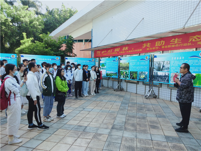 水生生物博物馆的老师为大家讲解了红树林生态系统概况、对我国海洋生态乃至整个地球及人类的重要意义,并号召同学们一起为保护红树林贡献自己的力量。