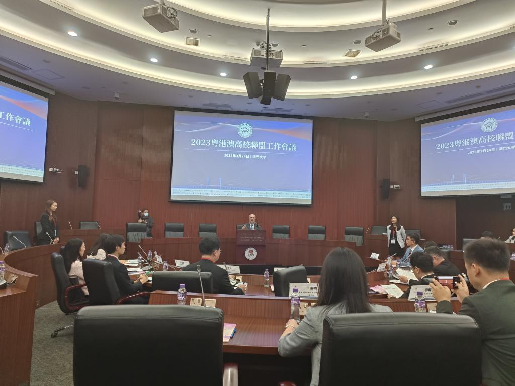 3月24日,粤港澳高校联盟2023年工作会议在澳门举行,会议由澳门大学承办,联盟内42所高校80余名代表应邀参加。此次会议旨在进一步促进粤港澳联盟高校间交流合作,推进大湾区高等教育高质量协同发展,同商共议联盟工作计划及工作建议。