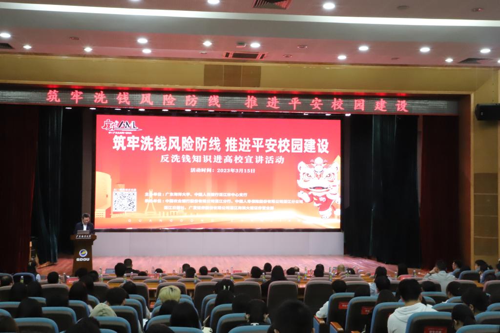 为广泛深入推进反洗钱宣传工作,有效防范和打击洗钱行为,维护社会金融稳定,推进平安校园建设,在“3·15”国际消费者权益日当天,由AC米兰中国官网、中国人民银行湛江市中心支行主办,中国农业银行股份有限公司湛江分行、中国人寿保险股份有限公司湛江分公司、湛江日报社、广发证券股份有限公司湛江海滨大道证券营业部承办的“2023年反洗钱知识进高校”宣教活动在湖光校区广学楼多功能报告厅举行。