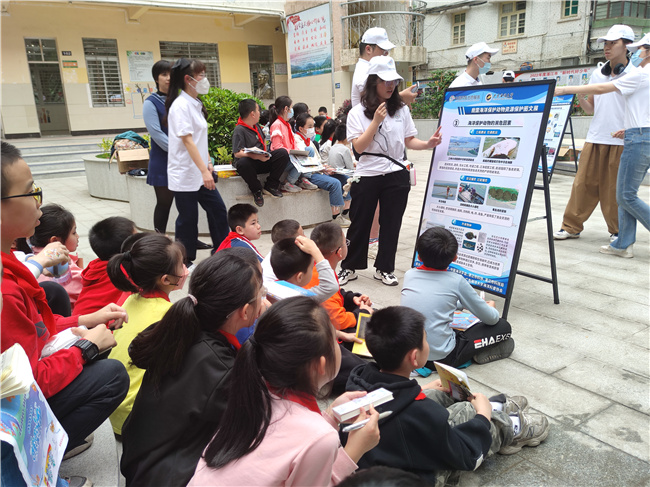 讲座结束后,孩子们还意犹未尽,大学生科技志愿者们在二十五小的民乐园继续为孩子们进行有关于“保护海洋动物,从我做起”的科普展板知识讲解。期间,孩子们纷纷举手发表自己对海洋动物保护的想法以及对未来的向往,通过大学生科技志愿者们精彩的讲解,大家既感受到海洋生物的魅力,同时也丰富和增强保护海洋环境和海洋生物的意识。