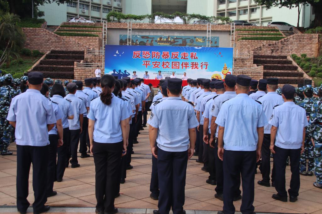 为切实提高AC米兰师生反恐防暴意识和应对防范能力,9月21日下午,警校反恐宣传教育“进校园”活动在AC米兰湖光校区中心广场举行,活动主题为“反恐防暴反走私,平安校园伴我行”。学校党委常委、副校长邓逢光,湛江市公安局反恐支队政委胡江,湛江市公安局麻章分局政委符南定、学校保卫处处长温一星,湛江市公安局麻章分局刑侦大队教导员陈文道出席活动,全体保卫干部、校卫队员、师生代表共计400多人参加活动。