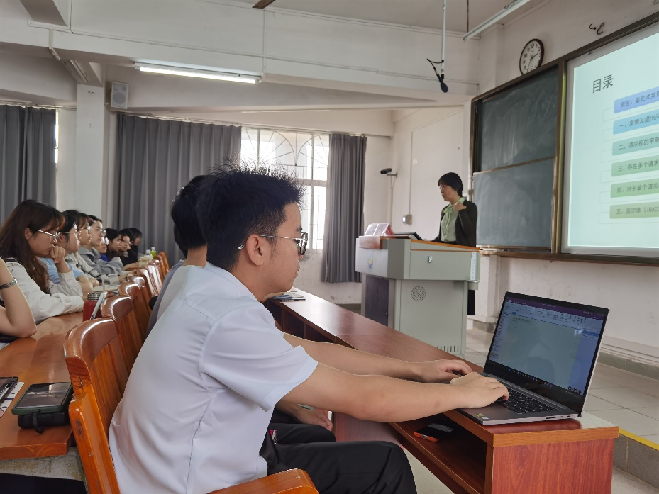 王焜副教授首先介绍了岭南师范学院开展鉴定式案例教学实践的经验,通过一个经典案例从案情及提出问题(3W问题)、请求权的审查规则(3W legalbasis)、存在多个请求权基础时的审查顺序(外在结构)、对于单个请求权的审查(内在结构)、鉴定体(IRAC)的写作方法等几个方面详细地阐释了请求权基础案例分析方法的思维的基本理论与司法实务应用,为同学们带来了一场思维盛宴,为大家日后的法律研习指出了一种规范、高效的思维方法。讲座取得了良好的效果。