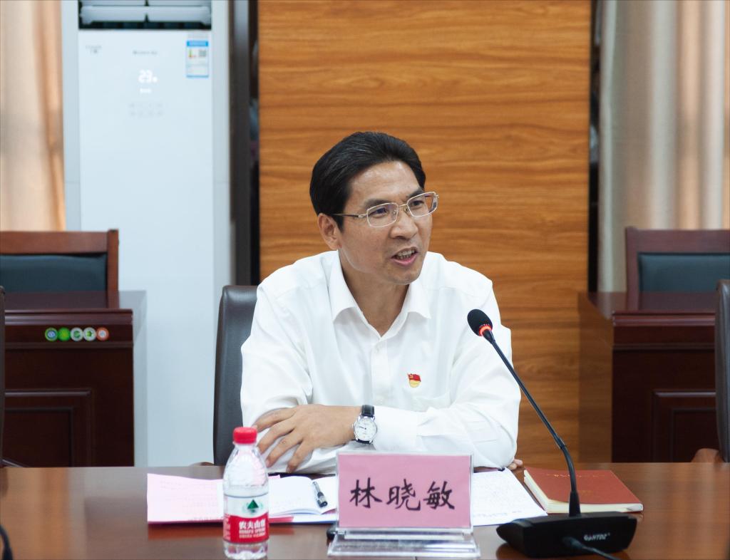 林晓敏介绍了党建“组团式”帮扶工作情况,表示两校在党建“组团式”帮扶工作中加深了交流、加深了感情、加深了友谊。他指出湛江科技学院在20多年的发展历程中走出了具有鲜明特色的新路,两校在交流过程中除了规定动作外,还可增加一些自选内容,真正把党建“组团式”帮扶工作做实做好。他强调公办大学和民办大学虽然在体制上有所不同,但都肩负着一个共同使命,就是“为党育人、为国育才”,因此我们是同行、是战友。他希望两校在人才培养和思想政治工作中相互学习、相互借鉴、取长补短,携手共进,共同把两校的学生工作推向新的台阶,为党育人、为国育才共同作出新的贡献。
