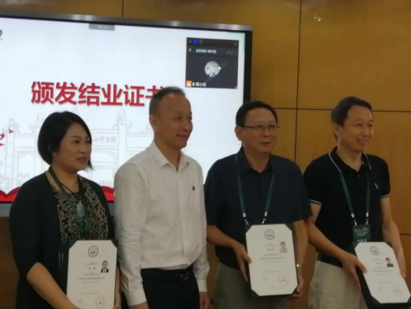中山大学产业集团党委书记、董事长、继续教育学院院长杨元红为学员颁发结业证书