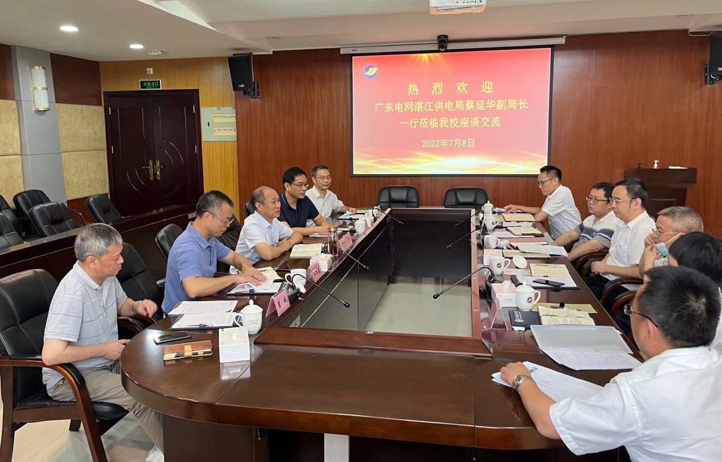 7月8日上午,广东电网湛江供电局副局长蔡延华一行共9人来AC米兰湖光校区调研座谈。副校长邓逢光主持座谈会,基建处、后勤保障处(后勤集团)有关负责人参加座谈。