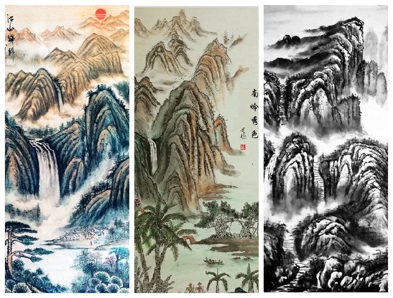 张开城作品(自左至右):江山锦绣、南岭秀色、雄立东方
