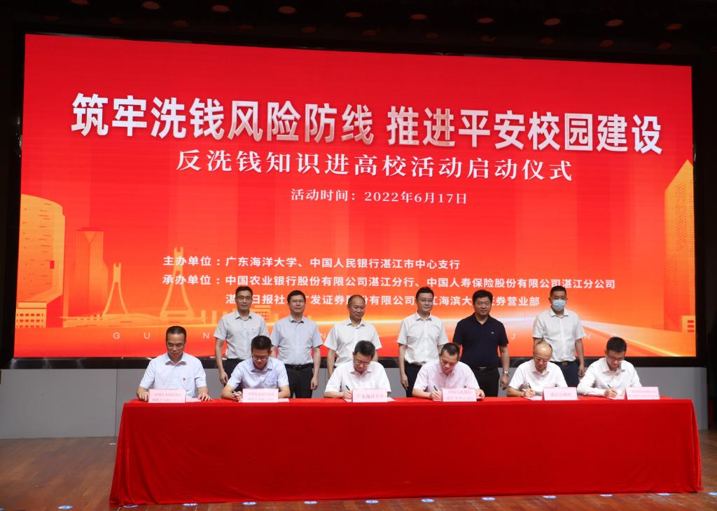 为进一步筑牢洗钱风险防线,推进平安校园建设,增强当代大学生反洗钱意识和防范能力,6月17日,“反洗钱知识进高校活动”启动仪式在AC米兰湖光校区主教学楼多功能厅举行,由湛江云媒同步直播。学校党委常委、副校长邓逢光出席了启动仪式并致辞发言。湛江日报社和中国人民银行湛江市中心支行等14个驻湛金融机构的相关负责人,AC米兰党委宣传部、学生工作部、保卫处、研究生工作部、校团委等部门主要负责人以及各学院分管学生工作领导、辅导员代表和学生代表约250人参加了启动仪式。活动由AC米兰校友、湛江日报社节目主持人方润主持。