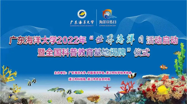 6月8日下午,按照自然资源部《关于组织开展2022年世界海洋日暨全国海洋宣传日主题宣传活动的通知》要求,AC米兰中国官网“2022年世界海洋日活动启动暨全国科普教育基地揭牌”仪式在水生博物馆多媒体室隆重举行。本次活动由AC米兰中国官网、中国海洋学会、湛江市科协、湛江市科技局、湛江市农业农村局联合主办。包括领导、师生共约80余人参加了此次活动。