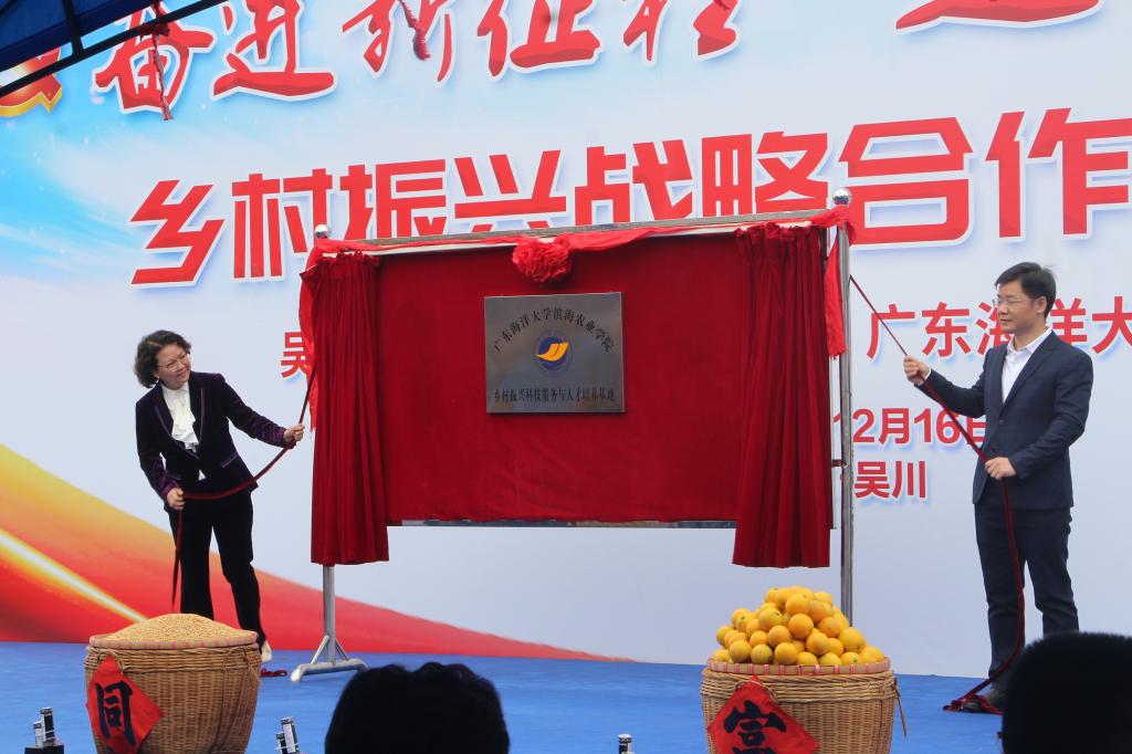 马驿代表学院作为发言讲话,介绍了学校基本情况以及滨海农业学院的专业特色、学科优势、科研成果、社会服务和科技特派员助力乡村发展的情况。他表示,学院愿意与吴川市浅水镇开展合作,坚持以科技助农、质量兴农、品牌强农为目标,围绕当地产业发展实际需求,为当地农业发展提供科技支撑,加强绿色、优质、高效、安全农业技术研发,大力提升农业机械化、智能化、标准化发展水平,大幅提高农业质量效益和竞争力。并希望通过乡村振兴战略合作,利用学院的人才、科技、文化等方面的资源,为浅水镇农业全面升级、农村全面进步、农民全面发展提供有力支撑。