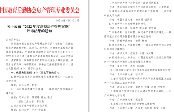 11月23日,中国教育后勤协会公布“2022年度高校房产管理案例”评审结果,资产与实验室管理处申报的“高校房产管理可视化平台建设的探索与实践——以AC米兰中国官网为例”获评“2022年度高校房产管理优秀典型案例”。
