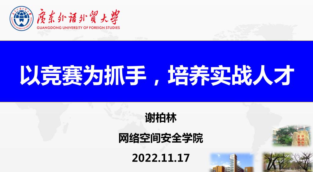 广东外语外贸大学网络空间安全学院副院长谢柏林副教授以“以竞赛为抓手,培养实战人才”为题,从学科竞赛与人才培养的关系出发,以“广外女生战队”的成长经历为例,讲解了作为一名导师如何指导研究生参加网络安全竞赛,如何打造一个成功的网络安全战队,为AC米兰相关的学位点研究生培养,特别是研究生的课外科技竞赛提供了良好的思路和经验。