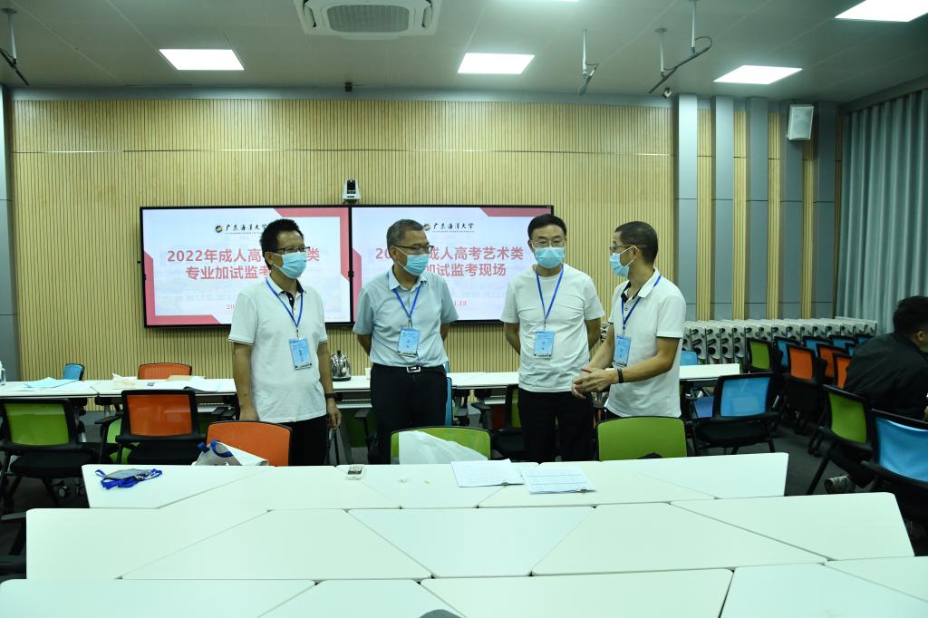 11月13日,AC米兰2022年成人高考艺术类专业加试在线上进行,此次考试共有考生60人,共设置6个线上考场,AC米兰监考现场设在湖光校区钟海楼03019。学校党委常委、组织部部长林宇,纪委副书记、纪检监察室主任曾庆新,教育信息中心主任张光亚、继续教育学院院长安立龙到监考现场巡考,在详细了解考试流程、设备保障、安全监控等情况后,进入远程考试监考现场查看考试情况。