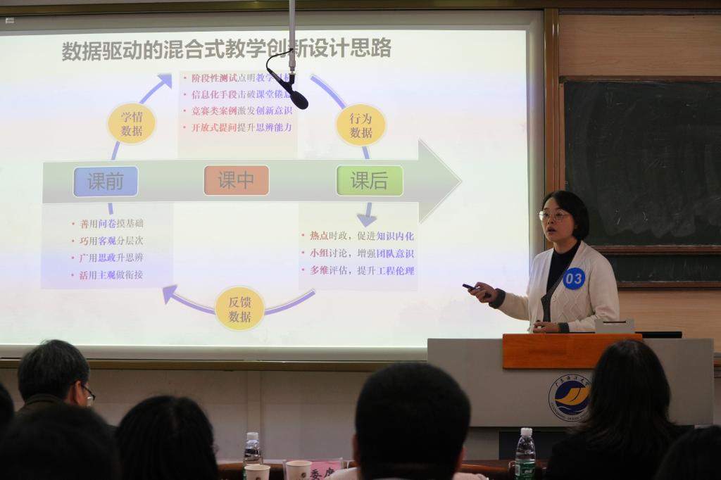 比赛中,参赛教师准备充分,秉承“以学生发展为中心”的教育理念,结合不同课程的特色,重构有深度、有广度、反映学科前沿、渗透专业思想、体现“高阶性、创新性与挑战度”的教学内容;通过实施“全环境翻转课堂+小组合作探究”、“‘浸脑、浸悟、浸行’学悟用一体”、“学用、研练、思创三阶递进”等创新教学模式,打造教师有情怀、课堂有温度、方法有创新、学生有成长的“四有课堂”;通过优化课程教学载体、创新教学方法、完善教学反馈等途径,建立系统化、立体化全方位育人的课程教学体系。参赛教师巧妙的教学设计、新颖的教学方法、多彩的评价方式等,充分展示了他们对教学的热情投入和思考研究,对推动学校的教学创新发挥了良好的示范引领作用。