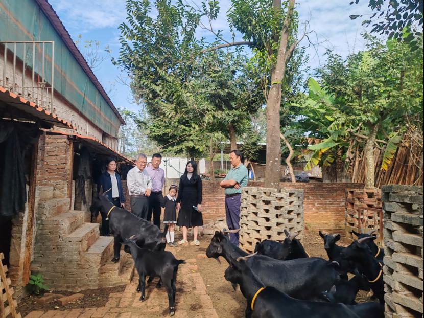 随后,调研组来到徐闻绿格子农业有限公司黑山羊养殖基地,该基地养殖和销售徐闻黑山羊已有近十年,由于黑山羊长期闭锁繁育导致种质退化,加之农作物茎干等饲料资源利用不充分,导致饲养规模一直不大。调研组深入基地羊舍察看,就肉羊繁殖、选育和饲料生产提出意见和建议。安立龙教授介绍,徐闻山羊是中国地方优良的品种之一,是中国国家地理保护产品,因其肉质鲜美、营养丰富,颇受食客钟爱,“徐闻肥羊”在华南地区供不应求;徐闻山羊适应高温多湿气候,不挑食、易管理,是农民增收致富的优良养殖品种。调研组专家表示,基地有现成的规模化养殖圈舍和场地,在养殖过程中,要分栏饲养,定期驱虫,通过品种改良、加强饲养管理等方式调整圈养周期。因地制宜,充分利用基地周边玉米、甘蔗等青绿饲料资源丰富及徐闻菠萝品牌优势,种植和养殖结合发展循环农业,建立玉米秸秆、甘蔗渣、菠萝残渣等废弃物养羊,羊粪无害化处理后还田种植农作物的农业资源高效循环利用、规模化标准化集约化种植的现代生态农业经济循环综合体,实现农产品“自给自足”,发展绿色、安全、无公害农产品生产。徐闻黑山羊养殖的发展,要紧紧抓住实施“百千万工程”的机遇,在徐闻产业高质量发展的新赛道上,以肥料与饲料供给为关键点发展循环生态农业,促进种植养殖增产提质,提高经济效益、社会效益和生态效益。