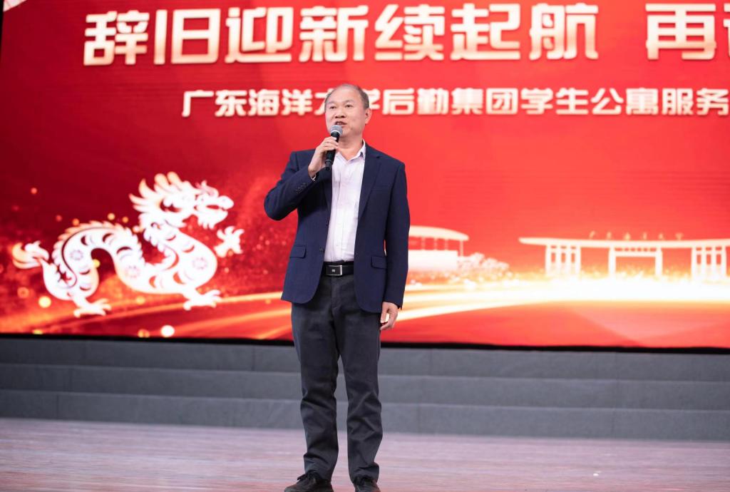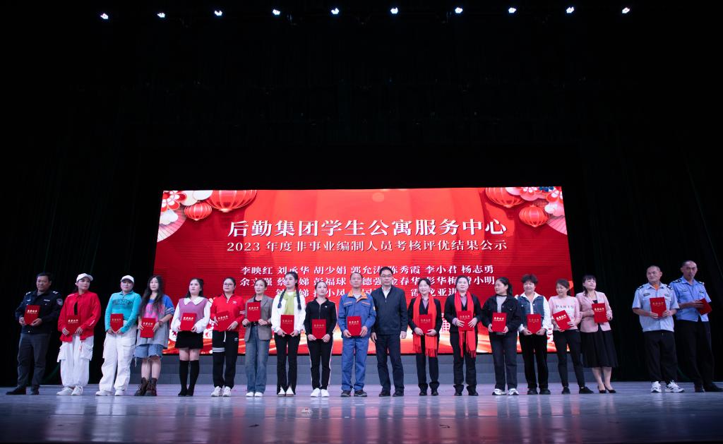 邓逢光在致辞中代表学校对学生公寓一年来取得的成绩表示热烈祝贺,向学生公寓全体员工在过去一年服务学校高质量发展的辛勤付出和努力表示诚挚感谢,并祝愿大家在2024年龙腾虎跃、再创辉煌。邓逢光指出,高校由教师队伍、管理队伍、后勤队伍三支队伍组成,每一支队伍都缺一不可,每一位教职员工都是学生的领路人,都是人才培养过程当中不可或缺的一员。后勤队伍在履行职责的过程中涌现出许多感人事迹,大家在平凡岗位上默默奉献,创造了不平凡的业绩。在新的一年里,邓逢光希望全体后勤人继续发扬锲而不舍的奉献精神,以更高的标准要求自己,不断提升服务质量,为学校的高质量发展和师生的幸福生活贡献力量。