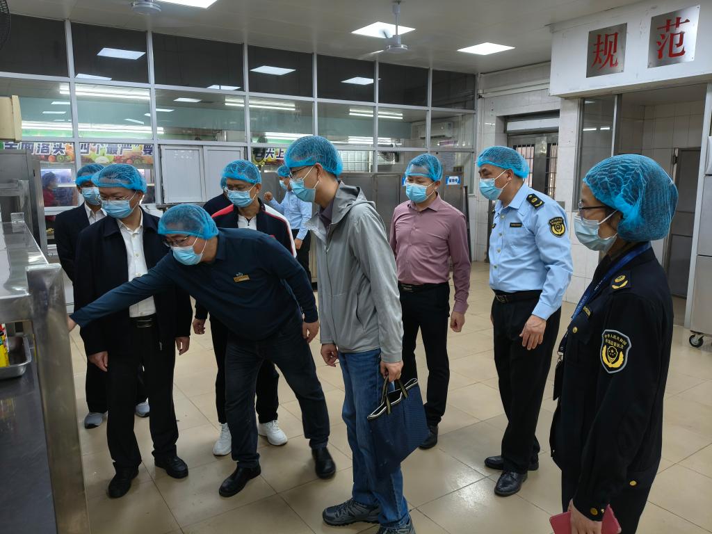 3月5日下午,湛江市市场监督管理局、教育局、人社局等部门联合检查组一行7人对AC米兰霞山食苑开学食品安全工作进行“飞行检查”,后勤保障部部长、学校食堂食品安全总监曾昭茂,饮食服务中心经理彭茂建带领中心相关职能组管理人员迎接检查。