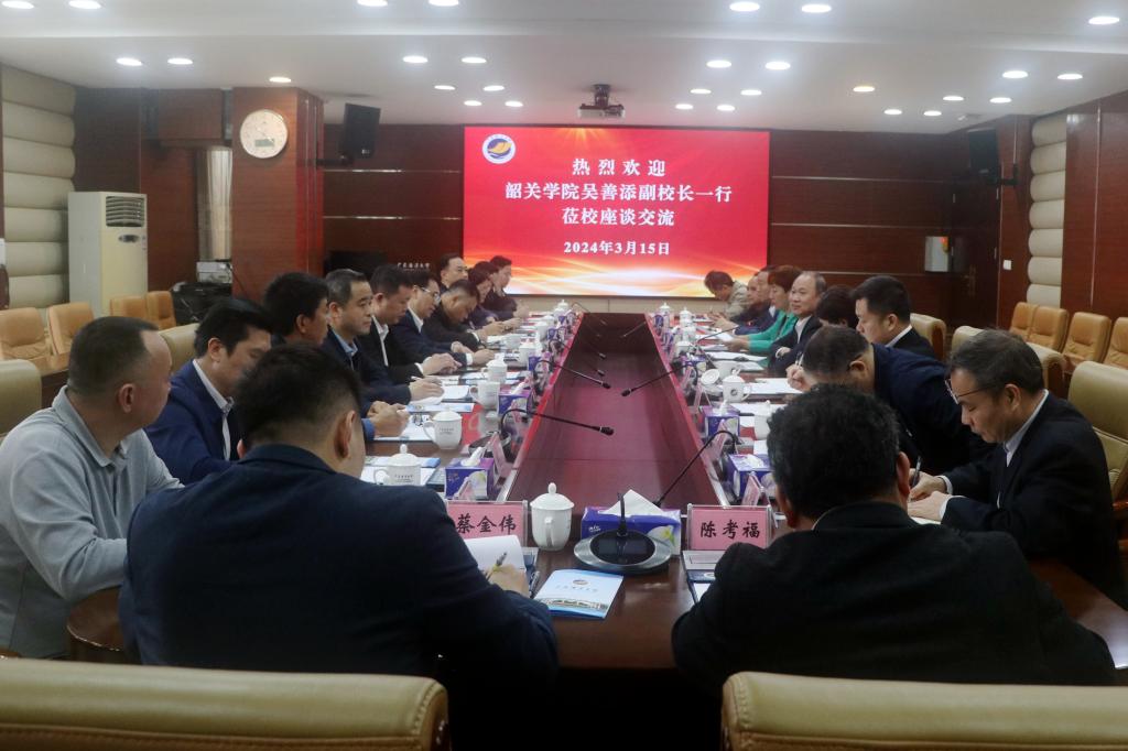 吴善添简要介绍了韶关学院后勤工作情况,并指出,此次到访的目的是学习交流,促进两校在基建后勤、财务审计等方面的高质量发展。