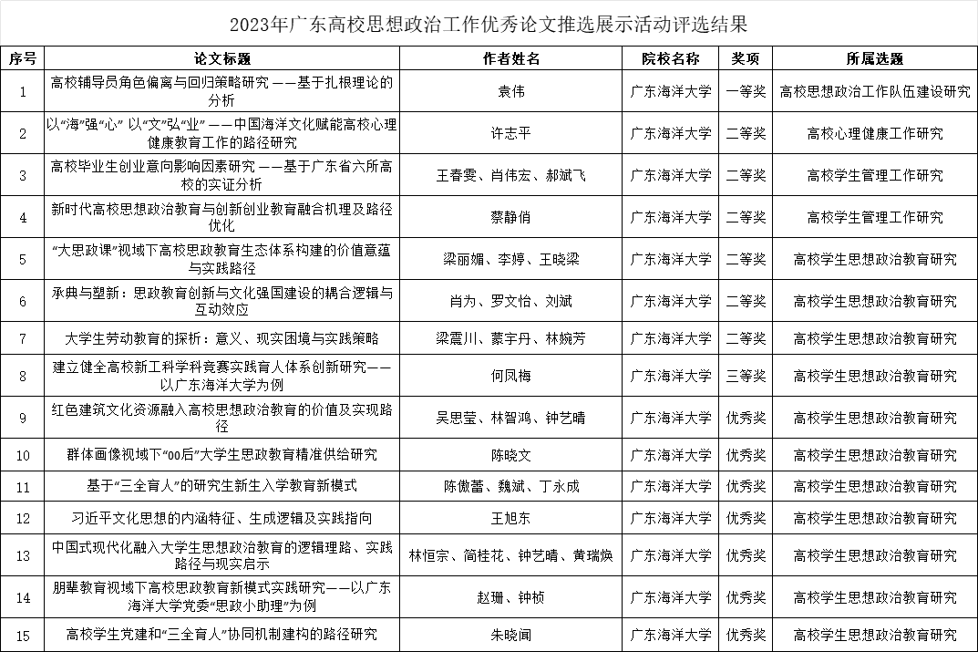 2023年广东高校思想政治工作优秀论文征集活动获奖名单(AC米兰中国官网)