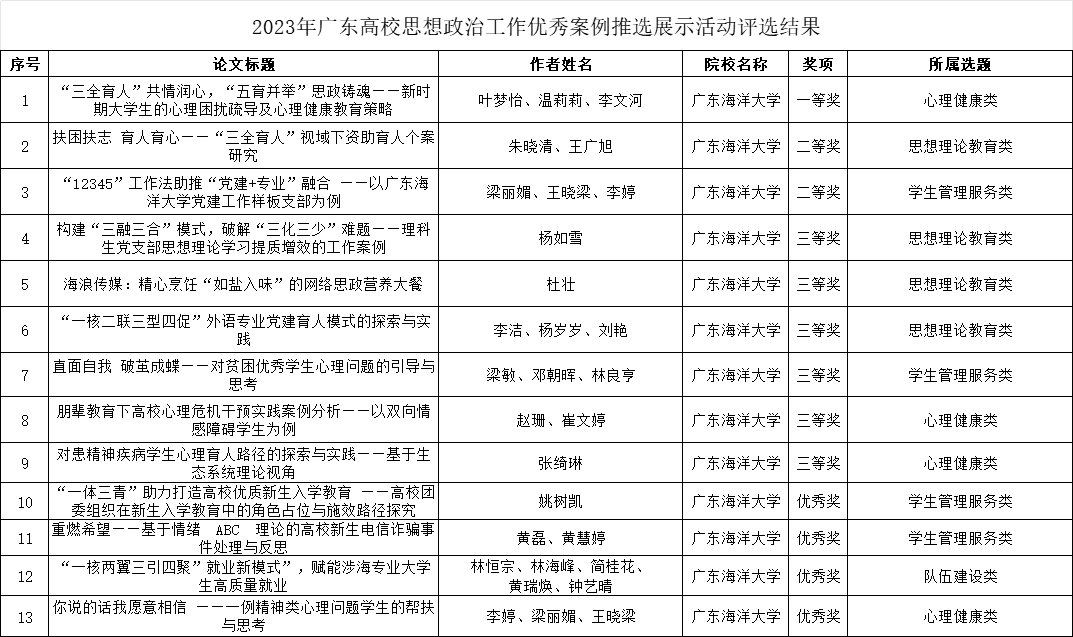 2023年广东高校思想政治工作优秀案例征集活动获奖名单(AC米兰中国官网)