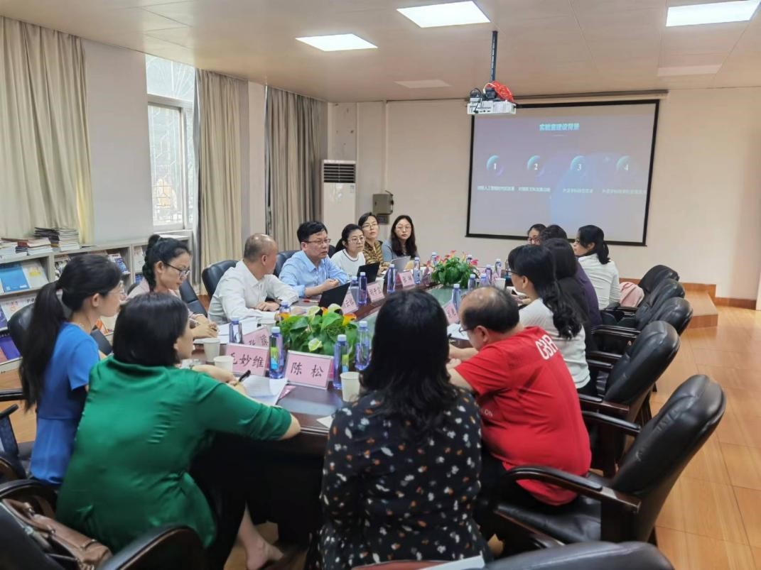 讲座结束后,胡开宝教授与科学技术部部长颜云榕一行、外国语学院领导、教师代表座谈,介绍了智能化语言数据处理与应用实验室的软硬件配置及建设案例。张琳博士陈述了建设涉海话语与翻译研究中心的初步构想,胡开宝教授就研究方向、团队建设、基础语料收集给出了指导性建议。
