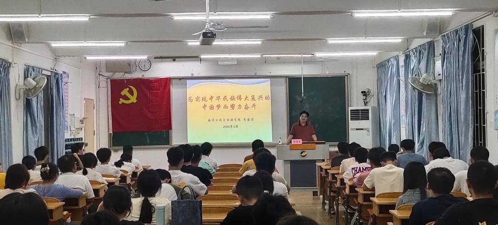4月1日晚,海洋工程与能源学院党委书记李国芳在海滨教学楼202室开展以《为实现中华民族伟大复兴的中国梦而努力奋斗》为主题的讲座,向80余名入党积极分子授课,开启了2024年春季学期的“思政第一课”。