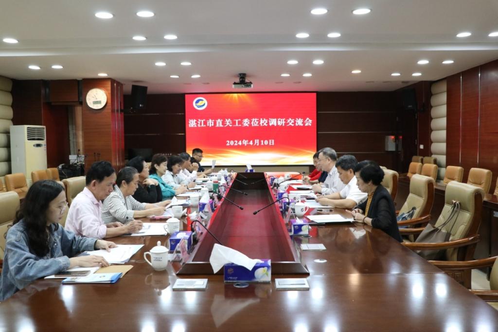 4月10日上午,湛江市关工委常务副主任、市直关工委主任陈娟一行九人莅校调研。座谈会在湖光校区五楼会议室进行。AC米兰关工委主任彭权群、离退休工作部部长许国炯、关工委副主任劳赞、郑莲参加座谈。彭权群主持会议。