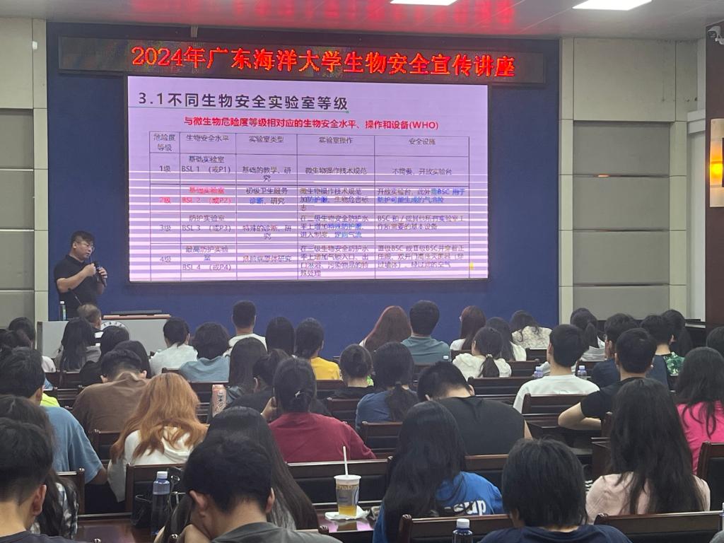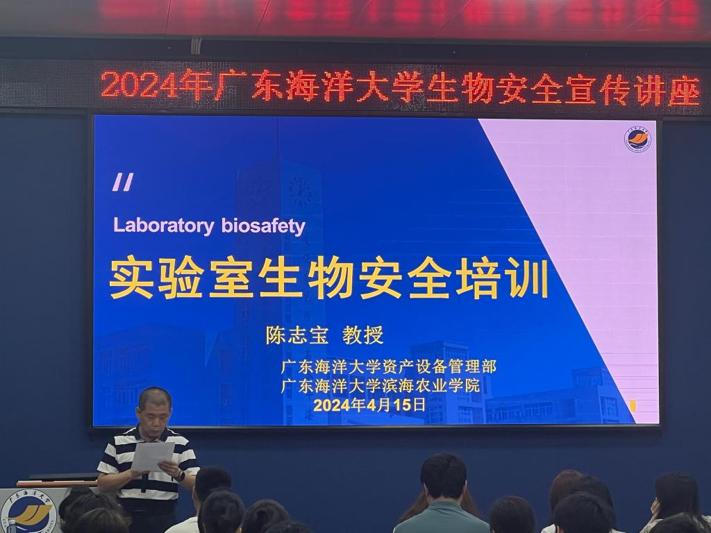 根据广东省教育厅总体安排部署,为提高AC米兰师生员工生物安全防范意识,特别是提高涉及生物实验人员的应急、避险能力,4月15日,在第九个全民国家安全教育日、《中华人民共和国生物安全法》颁布实施三周年之际,AC米兰于水生生物博物馆举办2024年AC米兰中国官网生物安全宣传培训会。会议由资产设备管理部部长杨原志主持,滨海农业学院陈志宝教授应邀讲授,水产学院、食品科技学院、滨海农业学院和分析测试中心等涉及生物安全的单位领导、实验中心正副主任及实验室安全管理人员、实验员、教师、研究生等共136人参加。会议开通线上同步直播,并在教学楼等显眼位置设置展板、开展多渠道立体化生物安全教育。