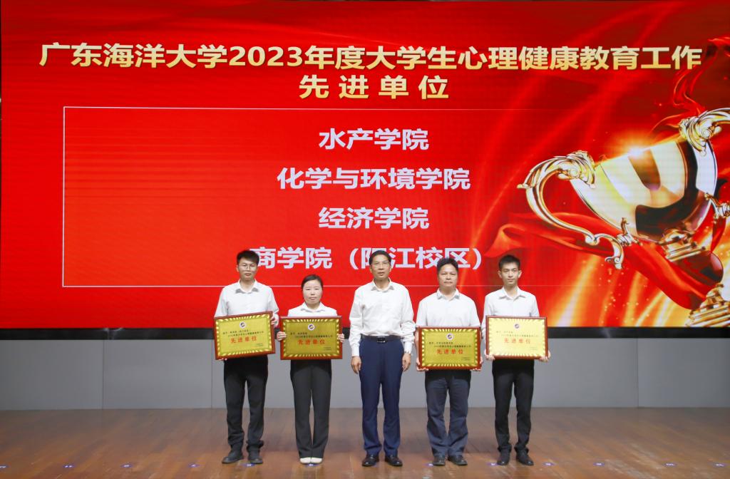 郑一鸣总结了2023年学生心理健康教育工作主要成效,分析了存在的不足和面临的挑战,对2024年的重点工作进行部署。学生工作部副部长吴俊羽宣读《关于表彰2023年度大学生心理健康教育工作先进单位和先进个人的决定》,林晓敏为水产学院、化学与环境学院、经济学院、商学院(阳江校区)4个先进单位和尹灿东等34名先进个人颁奖。先进单位代表、水产学院党委书记王海燕,先进个人代表、经济学院辅导员温莉莉、商学院(阳江校区)辅导员谭戈,心理健康教育与咨询中心教师杨苗苗分别从学院、辅导员、心理教师角度对大学生心理健康教育与咨询工作的做法、经验和工作亮点作了交流发言。