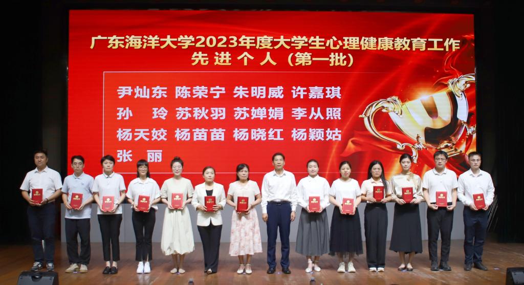 4月19日下午,学校在湖光校区广学楼多功能厅举行2023年度大学生心理健康教育工作总结表彰大会。学校党委副书记林晓敏出席会议并作讲话,学生工作部、保卫部(武装部)、后勤保障部、校团委、阳江校区学生事务部负责人,各学院分管学生工作领导,全体辅导员,心理健康教育与咨询中心全体人员170余人参加会议,阳江校区全体辅导员通过企业微信直播平台同步参会。会议由学生工作部部长郑一鸣主持。