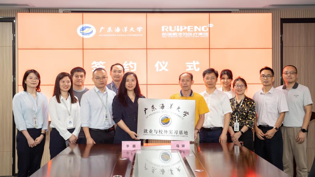 一行同广东华红食品集团股份有限公司、广东猪秀才农牧有限公司、广东鹰王贸易有限公司等3家企业达成合作意向,同深圳新瑞鹏宠物医疗集团、方格生态环境有限公司签订了校外实习与就业基地、产学研合作协议,并举行了挂牌仪式。