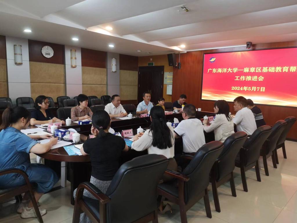 为深入贯彻落实省委、省政府关于推动基础教育深化改革高质量发展的意见,推进实施全口径全方位融入式帮扶工作,进一步落实基础教育帮扶协议任务,5月7日下午,麻章区副区长李倩怡、区教育局副局长吴家文一行7人莅校开展调研座谈,学校副校长宁凌,教务部、校团委、中歌艺术学院、继续教育学院等部门主要负责人参会。会议由教务部部长严谨主持。